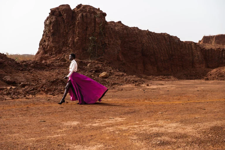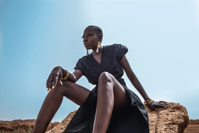 Ainsi nous pouvons déchiffrer tous ces codes dans la collection: épaulettes, poids Baoulé omniprésents, silhouettes assez masculines, couronnes et bijoux dorées.